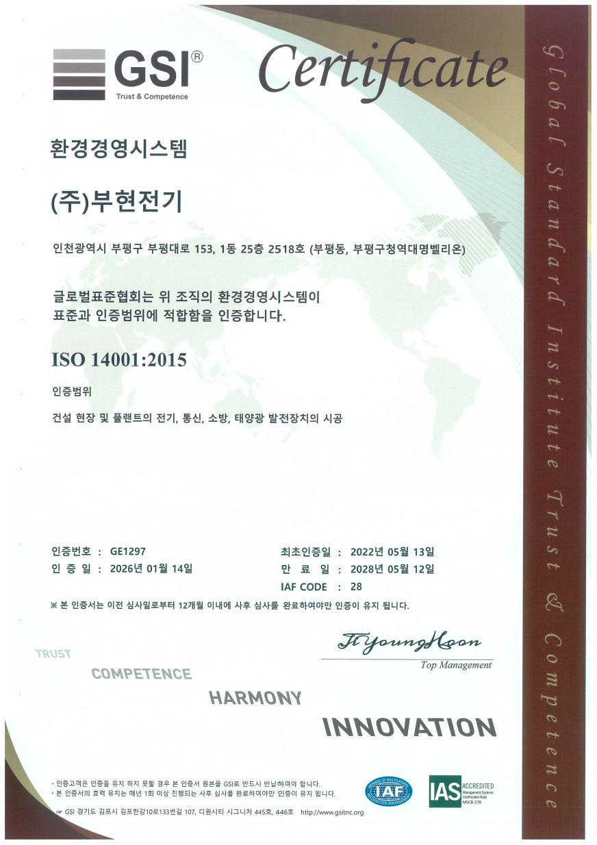 철저한 안전교육, 무사고 달성기업으로 신뢰받는 부현전기가 관리합니다.