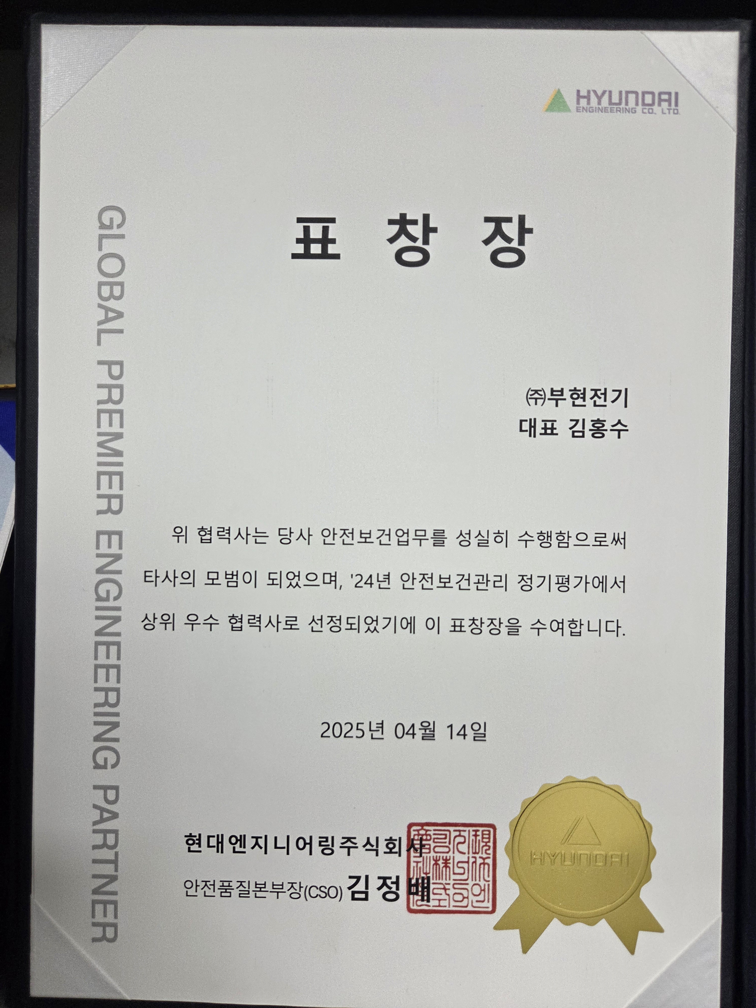 현대엔지니어링(주) 우수협력업체 (2025.04)